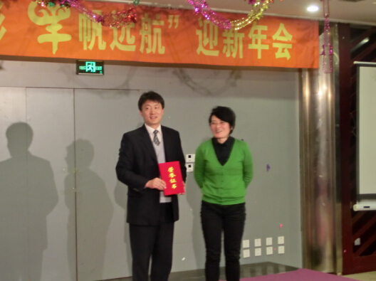 迎新年會對2014年度的先進員工進行了表彰,在會場宣讀了沈陽康芝《關于2014年先進表彰的決定》,并向先進團隊和個人頒發(fā)了獎狀,同時倡議大家學習先進、時刻以先進為榜樣,發(fā)揚榜樣在生產、生活中的帶動作用,在公司形成“趕、學、比、超”的良性競爭范圍。