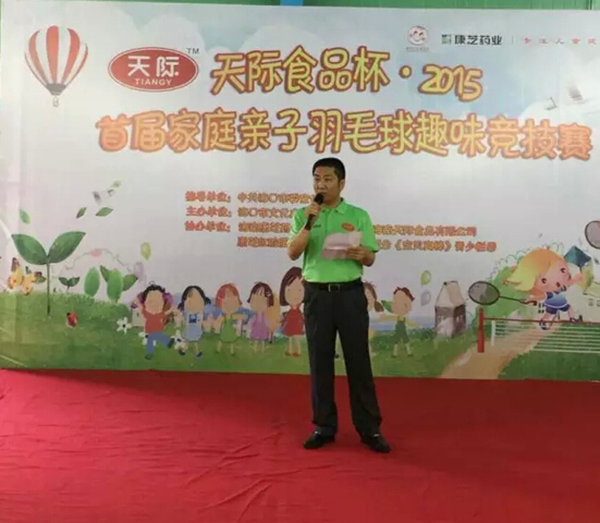 2015年6月14日上午10點,由中共??谑形麄鞑恐笇?,??谑形幕瘡V電出版體育局主辦,海南康芝藥業股份有限公司、海南天際食品有限公司、康芝紅臉蛋基金和??趶V播電視臺《寶貝真棒》青少欄目共同協辦的“天際食品杯?2015首屆家庭親子羽毛球趣味競技賽”頒獎典禮在??陧樈≡从鹈蝠^盛大舉行。