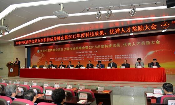12月10日,“中華中醫藥學會第五次科技成果高峰論壇暨2015年度科技成果、優秀人才獎勵大會”在廣東藥學院本部隆重舉行。國家科學技術獎勵工作辦公室主任鄒大挺、國家中醫藥管理局副局長馬建中、廣東省政府副秘書長李貽偉等領導,及康芝藥業股份有限公司總裁助理關熠坤等嘉賓參會。