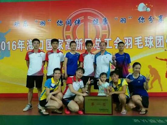 8月20日至28日,由??谑袊腋咝聟^管委會主辦,??趪腋咝聟^總工會承辦的“2016年??趪腋咝聟^總工會羽毛球團體賽”在海口舉行??抵ニ帢I羽毛球隊在各位成員的共同努力下,積極進取,勇于爭先,獲得比賽第一名的佳績。