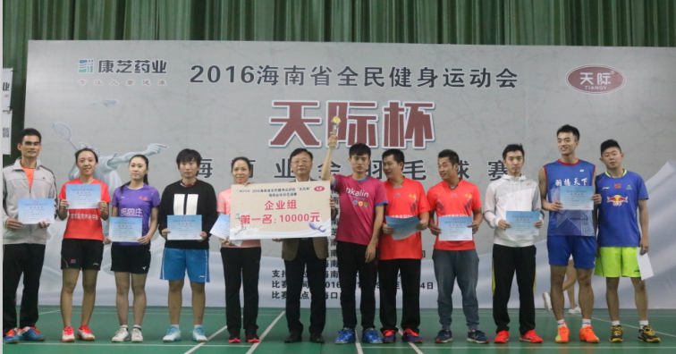 12月4日,由海南省人民政府主辦,海南省文化廣電出版體育廳、海南省體育總會承辦,康芝集團旗下天際食品冠名支持、康芝集團成員企業康芝藥業參與協辦的2016年海南省全民健身運動會“天際杯”海南業余羽毛球賽在海口圓滿閉幕。海南省文化廣電出版體育廳群眾體育處調研員劉勇,海南省體育總會主席陳亞俊、副主席兼秘書長葉志春、副主席王智勇,康芝集團工會主席何子群,康芝藥業品牌管理部總監方康莉、海南總廠辦公室主任周小欣等出席了閉幕儀式。