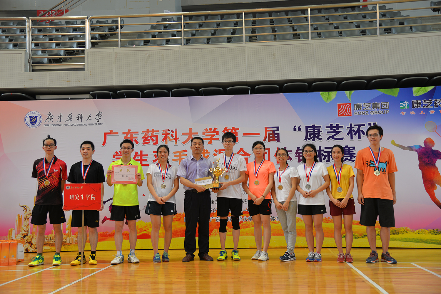 6月3-4日,由康芝集團(tuán)、康芝藥業(yè)冠名贊助的廣東藥科大學(xué)首屆“康芝杯”學(xué)生羽毛球混合團(tuán)體錦標(biāo)賽在廣藥大學(xué)城校區(qū)體育館舉行。來自廣東藥科大學(xué)各學(xué)院的12支學(xué)生代表隊參加了比賽。