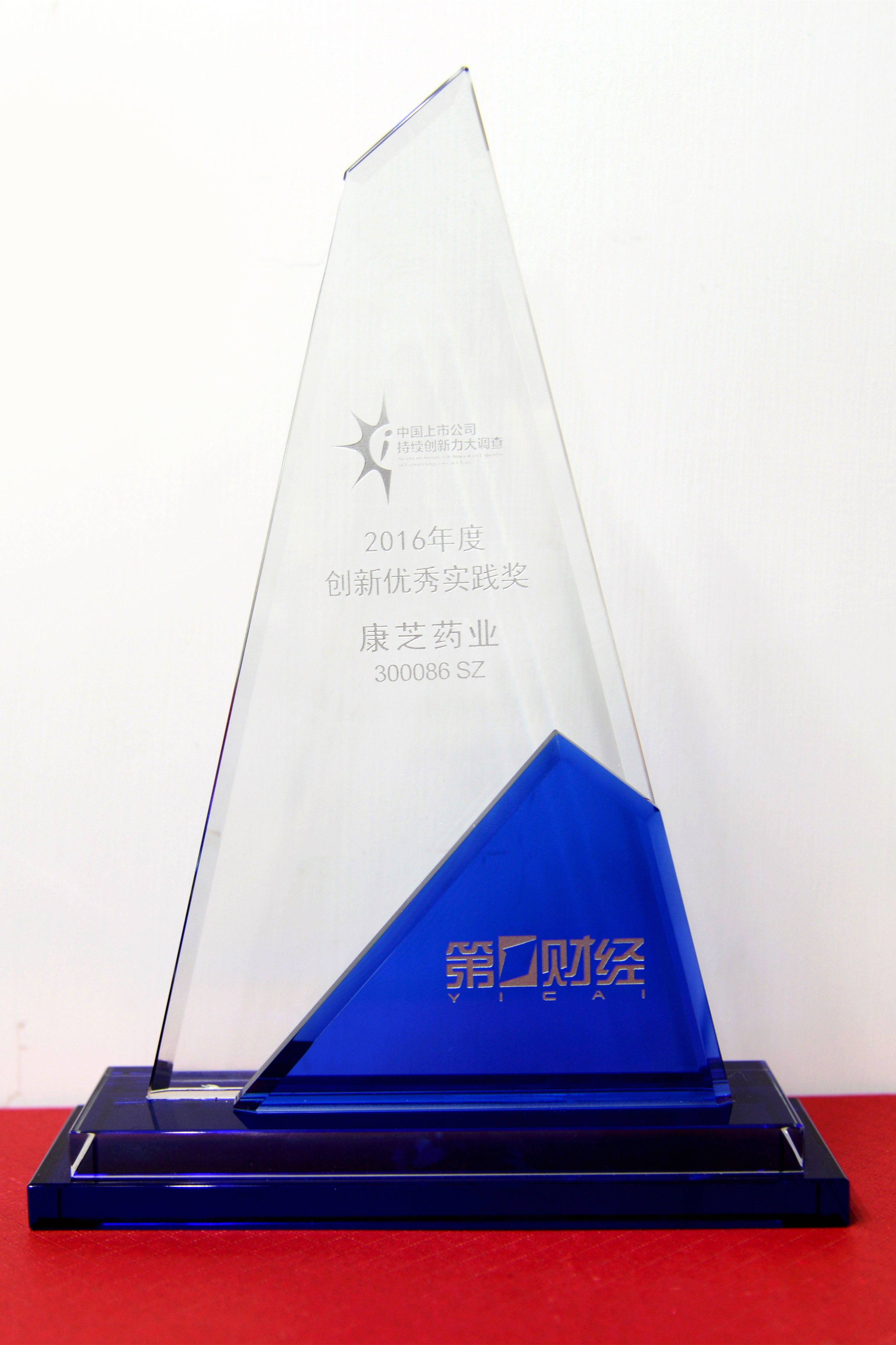 《中國上市公司持續創新力調查榜》旨在發現中國上市公司年度創新典范、創新型公司榮耀領袖,記錄中國上市公司成長歷程,見證“創新”使命在中國的萌發與成長。此次評選涵蓋了互聯網+、智能制造、環保、新能源、金融、醫藥、農業等領域。最終,包括康芝藥業在內的近50家上市公司在評選中脫穎而出。
