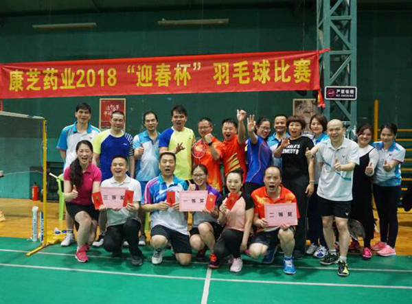 2月23日,康芝藥業2018“迎春杯”羽毛球比賽在區莊弘揚羽毛球館圓滿舉行。康芝藥業董事長洪江游、工會主席龍殿康、OTC事業部全國銷售總監黃孝松、OTC事業部市場總監陳艷杰,以及各個部門的同事一同到球館參加比賽。