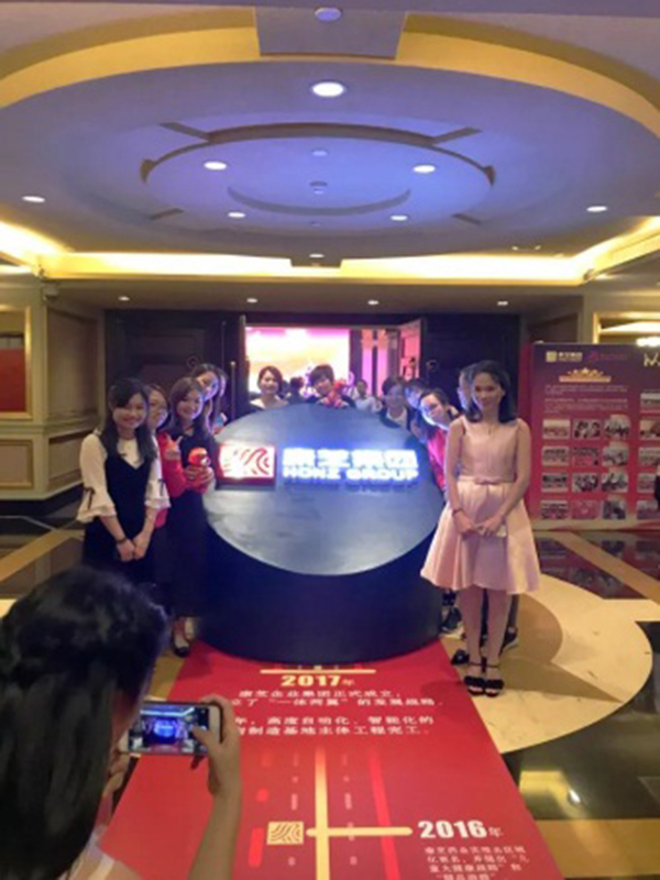 晚會(huì)景墻,鮮花群放,HONZ環(huán)繞其中,喜氣洋溢,歡迎八方來賓。