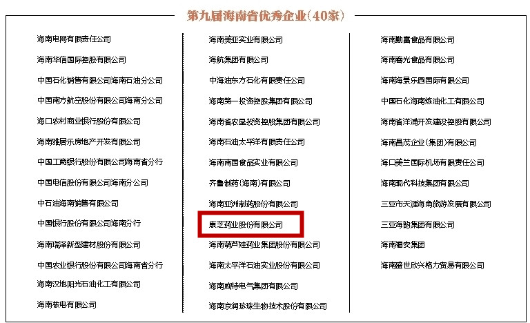 其中,知名兒童藥上市企業(yè)康芝藥業(yè)繼2016年登榜后,今年再度成功入選,榮獲第九屆“海南省優(yōu)秀企業(yè)”稱號(hào)。