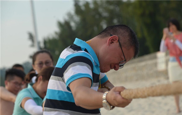 最后,工會還組織了沙灘拔河比賽。參賽隊員們個個摩拳擦掌,鉚足了勁兒,只等裁判員哨聲一響便紛紛使出洪荒之力,齊心協力往后拉,為“拔得頭籌”而拼盡全力。周圍的觀眾也毫不示弱,變身啦啦隊員,為自己的團隊加油助威、齊聲呼喊。一時間,歡呼聲、吶喊聲、加油聲此起彼伏,將比賽逐漸推向了白熱化。拔河比賽充分展現康芝人上下齊心協力、堅持不懈、敢拼敢為的良好精神風貌,進一步增強了企業凝聚力。