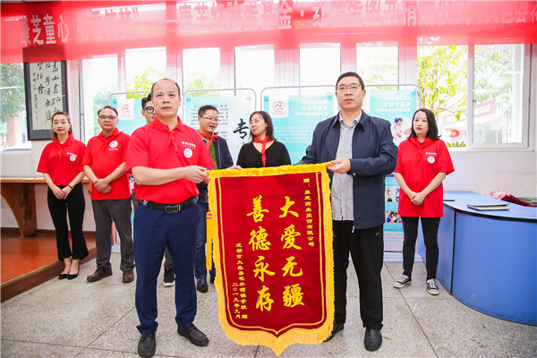 為鼓勵孩子們多讀書、讀好書,龍殿康先生向花水灣小學(xué)校長何平贈送了“愛心共建學(xué)?!迸曝摇=又?,花水灣鎮(zhèn)學(xué)校校長幸貴明代表學(xué)校給康芝藥業(yè)贈送了“大愛無疆 善德永存”的錦旗。