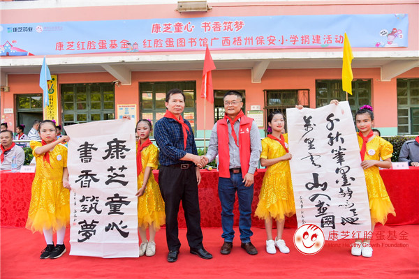 2019年11月11日,康芝紅臉蛋基金攜手康芝藥業梧州代理商團隊及當地診所前往廣西省梧州市萬秀區夏郢鎮保安小學開展愛心探訪及捐贈活動,第21所康芝紅臉蛋圖書館落戶梧州。