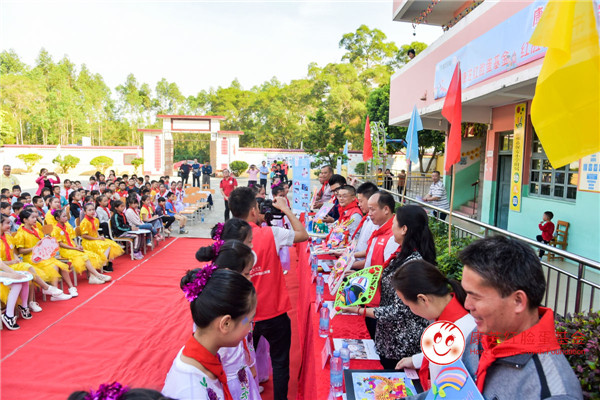 隨后,康芝藥業向卒錦坤校長贈送了“愛心共建學?!迸曝?;康芝藥業副總裁李幽泉先生給學校送上了“康芝童心 書香筑夢”、“千秋筆墨驚天地 萬里云山入畫圖”兩幅書畫作品;康芝工會給孩子們帶來了一批體育用品;康芝藥業梧州代理商及診所團隊還給孩子們送上了書包、文具等文體用品。