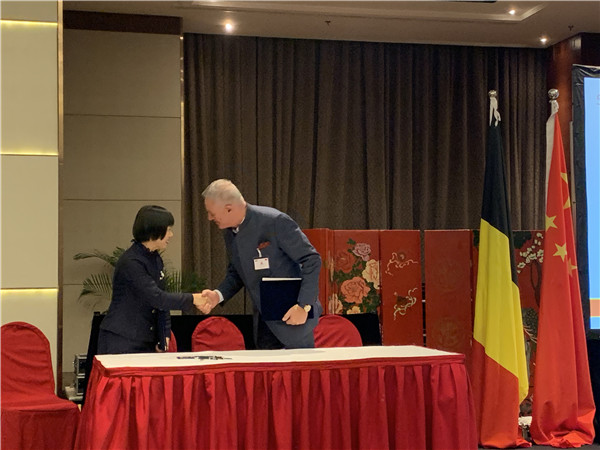 11月18日,比利時阿斯特里德公主率領經貿代表團訪問中國,康芝藥業副董事長兼副總裁洪麗萍女士、首席科學官辜列先生、王思蓉經理一行受邀參加比利時經貿代表團在北京站的商務活動。當天,洪麗萍女士與比利時Vésale Pharma公司董事長Jehan Lienart先生代表雙方公司簽署了全面合作協議。