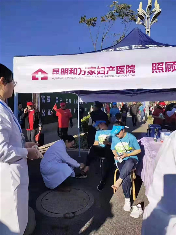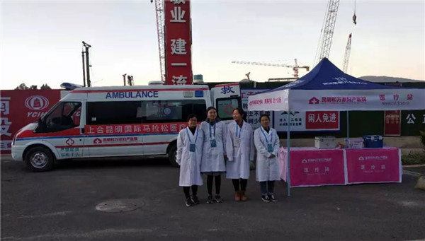 昆明和萬家醫院作為本次賽事醫療保障定點醫院,派出一支專業的醫療隊伍,在賽程中設置了醫療救護站,并派出醫護人員分布于賽道,分段進行醫療監護,積極支持保障此次馬拉松賽事的順利舉辦。