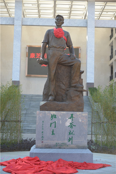 普寧市人民政府蔡桂君副市長作了講話,她對普寧二中新校區(qū)增添一個(gè)標(biāo)志性的文化景觀表示熱烈的祝賀,并向捐贈(zèng)雕像的洪江游先生表示崇高的敬意,向雕像家曹崇恩先生等的辛勤付出表示衷心感謝。她希望二中師生不僅要把雕像作為一種校園景觀,而且要更多地思考雕像蘊(yùn)藏的創(chuàng)新精神,汲取其中蘊(yùn)藏的精神并用之于教學(xué)和學(xué)習(xí)中去。