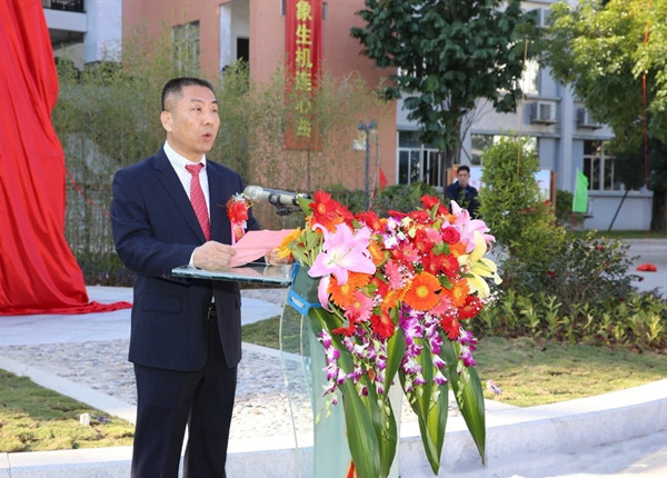 △康芝藥業(yè)董事長洪江游在雕像落成揭幕儀式上發(fā)言