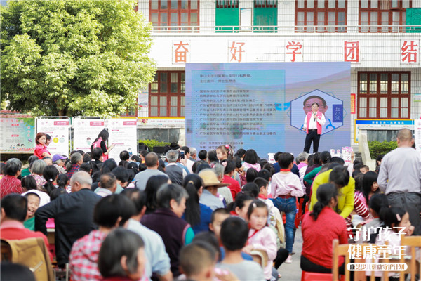 2019年12月17日,康芝紅臉蛋基金攜手中國兒童少年基金會、大翔集團、廣東省南方閱讀公益基金會在清遠連南社墩小學舉辦了“守護孩子健康童年”康芝少兒健康知識普及暨愛心藥箱公益捐贈活動,這是繼2018年9月“康芝童心,書香筑夢——康芝紅臉蛋基金?紅臉蛋圖書館捐建活動”后,康芝紅臉蛋基金在社墩小學再次開展的探訪活動。