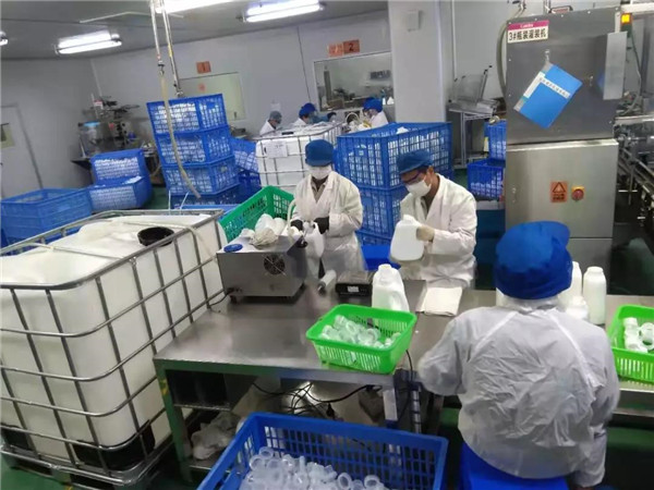 2月6日,康芝藥業旗下中山愛護的生產車間,已經是熱火朝天的生產場面,大家正為打贏疫情防控攻堅戰而忘我工作。