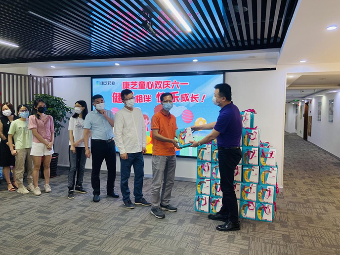 如今,正處于疫情防控的關鍵時期,雖取消了原計劃的親子游,但康芝始終希望孩子能夠擁有健康快樂的“六一”。 531日下午,康芝廣州區工會開展以“我在你身邊”為主題的“六一”兒童節關心關愛職工子女活動,董事長助理王勇總廣州區工會主席龍殿康親自派發康芝愛心六一禮物