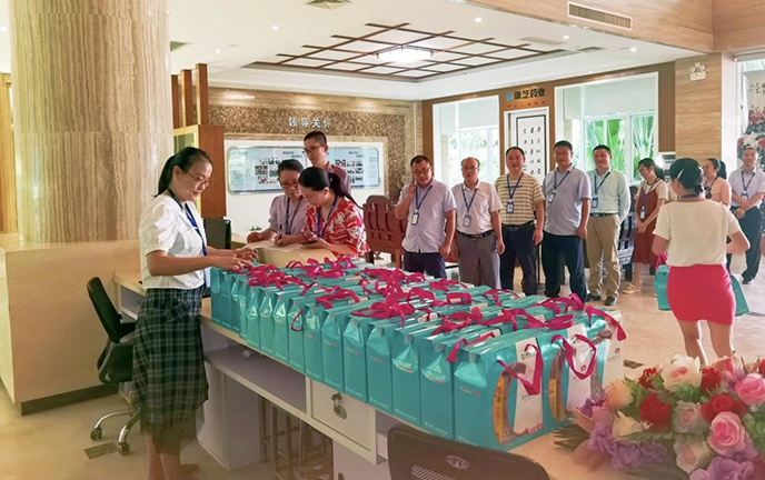 在康芝海南基地海南工會主席何子群代表工會,親自為職工發放康芝愛心六一禮物,現場氣氛熱烈,在海口市37度的炎熱天氣下,全體康芝人依然興致高漲,大家紛紛康芝工會組織表達了極高的認同感。來自海南基地車間代表吳小芳表示與康芝風雨同舟17載,從18歲小姑娘到為人母親,始終感受到來自康芝大家庭的關愛與溫暖,對自己身為康芝人感到榮幸至極!