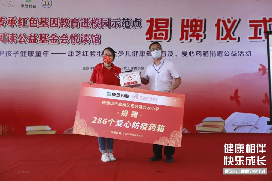 9月17日,中秋佳節(jié)來臨之際,由中國兒童少年基金會指導,康芝藥業(yè)、康芝紅臉蛋基金會主辦,廣東省南方閱讀公益基金會承辦的2021年度“康芝紅臉蛋基金少兒健康知識進校園暨愛心藥箱公益捐贈活動”第九站來到了高明區(qū)更合鎮(zhèn)合水小學。