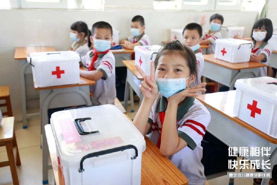 隨后,由廣東省南方閱讀公益基金會秘書長王茜女士代表康芝藥業(yè)向師生們捐贈愛心守護藥箱。每份藥箱都蘊含著康芝對孩子們滿滿的愛與關懷,里面貼心地放置了健康手冊、一次性防疫口罩、止血貼、急救毯等常規(guī)應急用品及藥品,基本滿足家庭的日常醫(yī)藥及防疫需求。