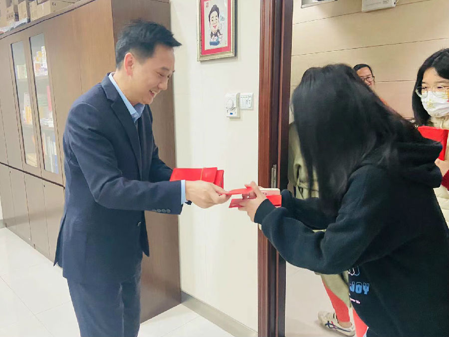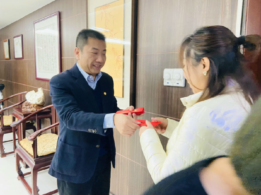 康芝藥業總裁洪江濤先生代表公司向康芝人親自派發虎年開工紅包,并致以新春的祝福及節日的問候,寄托了公司對大家新年工作的美好祝福和期許!