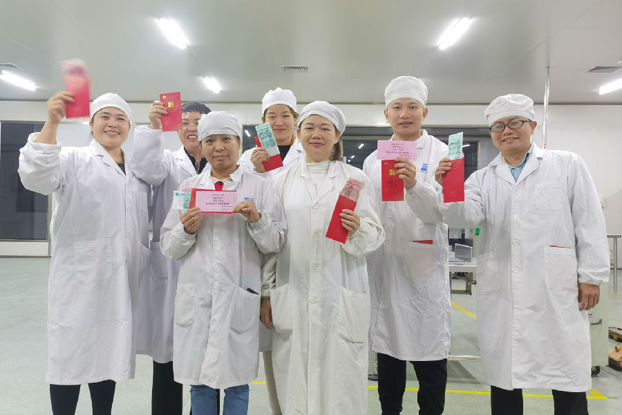 辦公室充滿著歡聲笑語,每位康芝人手里拿著象征吉利的開門利是,相互祝福開工大吉。小伙伴們結伴排著隊到各位管理者的辦公室,爭先說著吉祥話,開心地收下象征事業進步的紅包。一大堆紅包在“新年好”“恭喜發財”“心想事成”等新年祝福聲中派出,員工們的臉上洋溢著喜悅的笑容,新年新啟航,個個都摩拳擦掌,打算在新的一年做出一番新的成績。