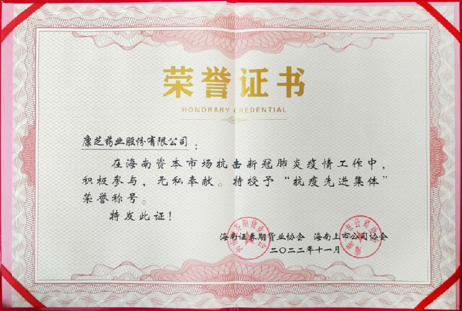 近日,在海南證監(jiān)局的指導(dǎo)下,海南證券期貨業(yè)協(xié)會、海南上市公司協(xié)會在海口召開海南資本市場抗擊新冠肺炎疫情先進(jìn)事跡報(bào)告會,表彰抗疫先進(jìn)個人和先進(jìn)集體。會上,康芝藥業(yè)榮獲“抗疫先進(jìn)集體”稱號。