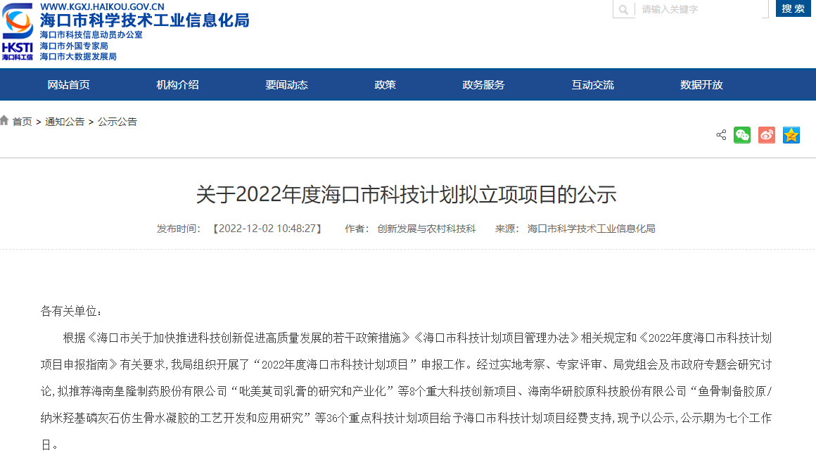 近日,海口市科學技術工業信息化局發布《關于2022年度海口市科技計劃項目立項的通知》,康芝藥業“布洛芬去氧腎上腺素片臨床試驗及產業化研究”科研項目順利通過專家組評審,成功入選“2022年度海口市科技計劃項目”。