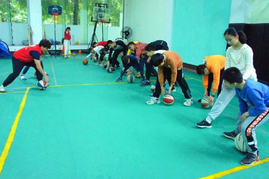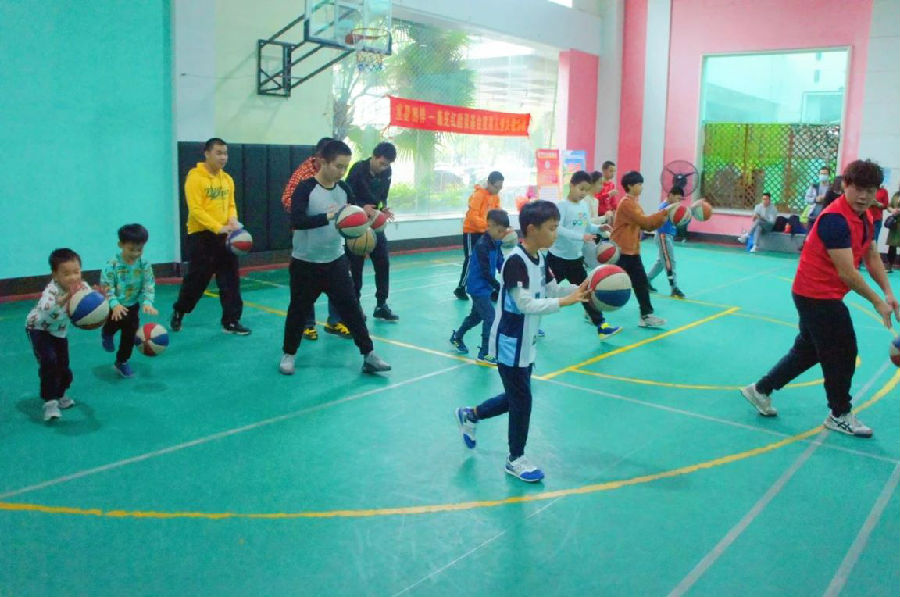 講解完畢,孩子們就已經開始躍躍欲試。活動伊始,孩子們嘗試著于他們而言新穎的籃球游戲。因為從未接觸過籃球,他們尚未完全掌握游戲的要領,動作也比較生疏,但是在一眾家長和志愿者的鼓勵與幫助下,孩子們大汗淋漓地游玩著,用心地對待每一個游戲環節,歡笑不斷,嬉笑玩鬧著,現場洋溢著幸福滿足的氣息。球場上孩子們跑動的身影、童真的笑容,仿佛黑夜中星星般的光芒,讓我們忍不住拍下照片,留住這一刻難得的美好。