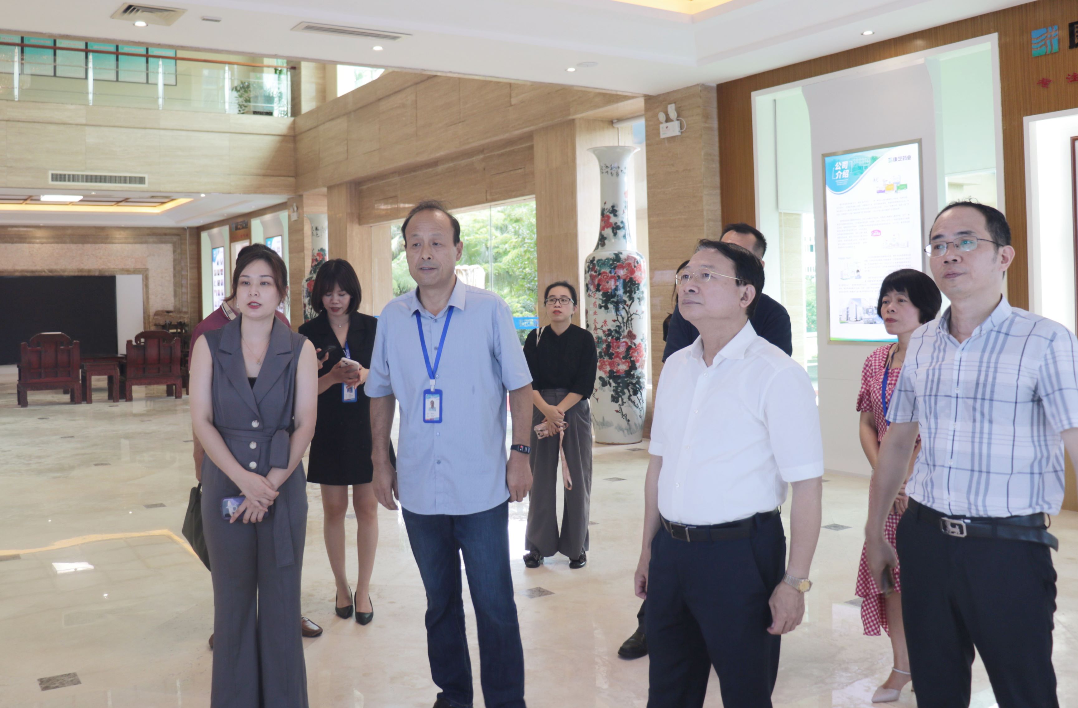 在林德新總的介紹下,海南省人社廳一級巡視員林琳與省技師學院領導一行參觀了康芝藥業展廳,深入了解康芝藥業的發展歷程、明星產品以及企業榮譽等。林琳一級巡視員對康芝藥業“專注兒童健康”的戰略表示認可,并高度贊揚了康芝企業文化。