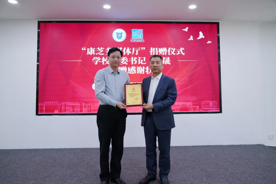 在與會師生、校友的見證下,劉晟書記向洪江游董事長頒發捐贈感謝狀。改造后的“康芝多媒體廳”,不僅配備了先進的設備,更融入了前沿的教育理念,將成為一個集教學、研討、娛樂、交流于一體的綜合性場所,為培養具有國際視野、創新精神和實踐能力的醫藥人才提供強有力的支撐。