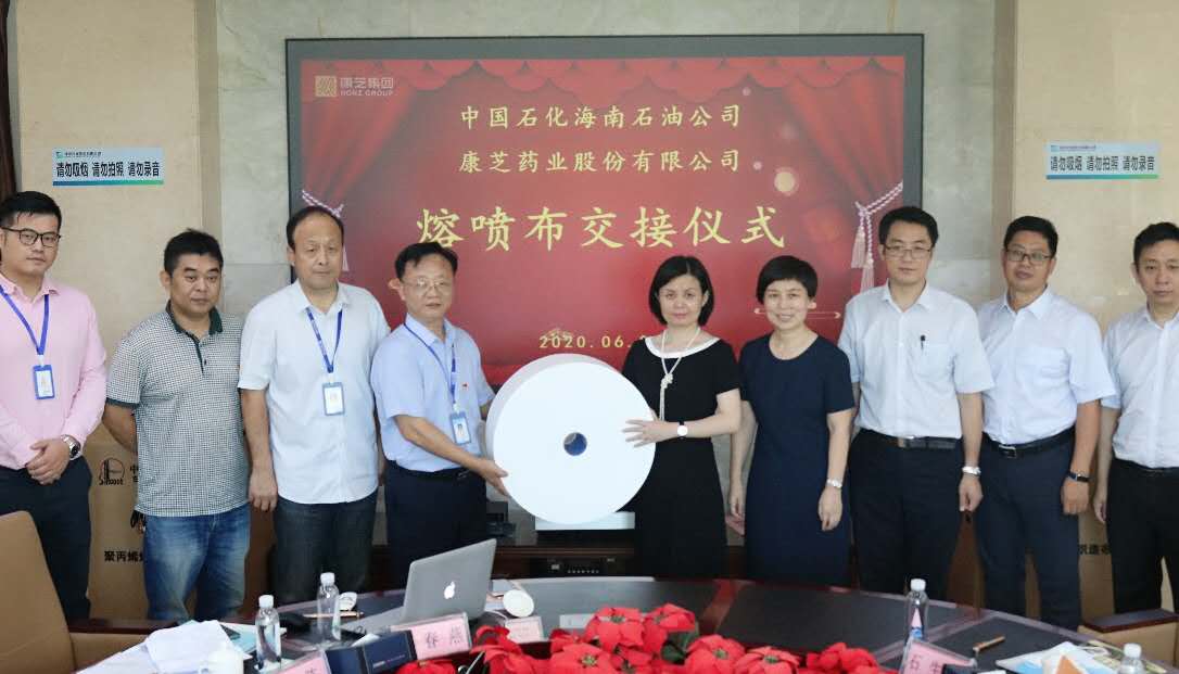 6月6日,在海南省工信廳的見證下,康芝藥業(yè)股份有限公司與中國石化海南石油公司在康芝藥業(yè)海南生產(chǎn)基地二樓會議廳進行了首批熔噴布交接儀式。